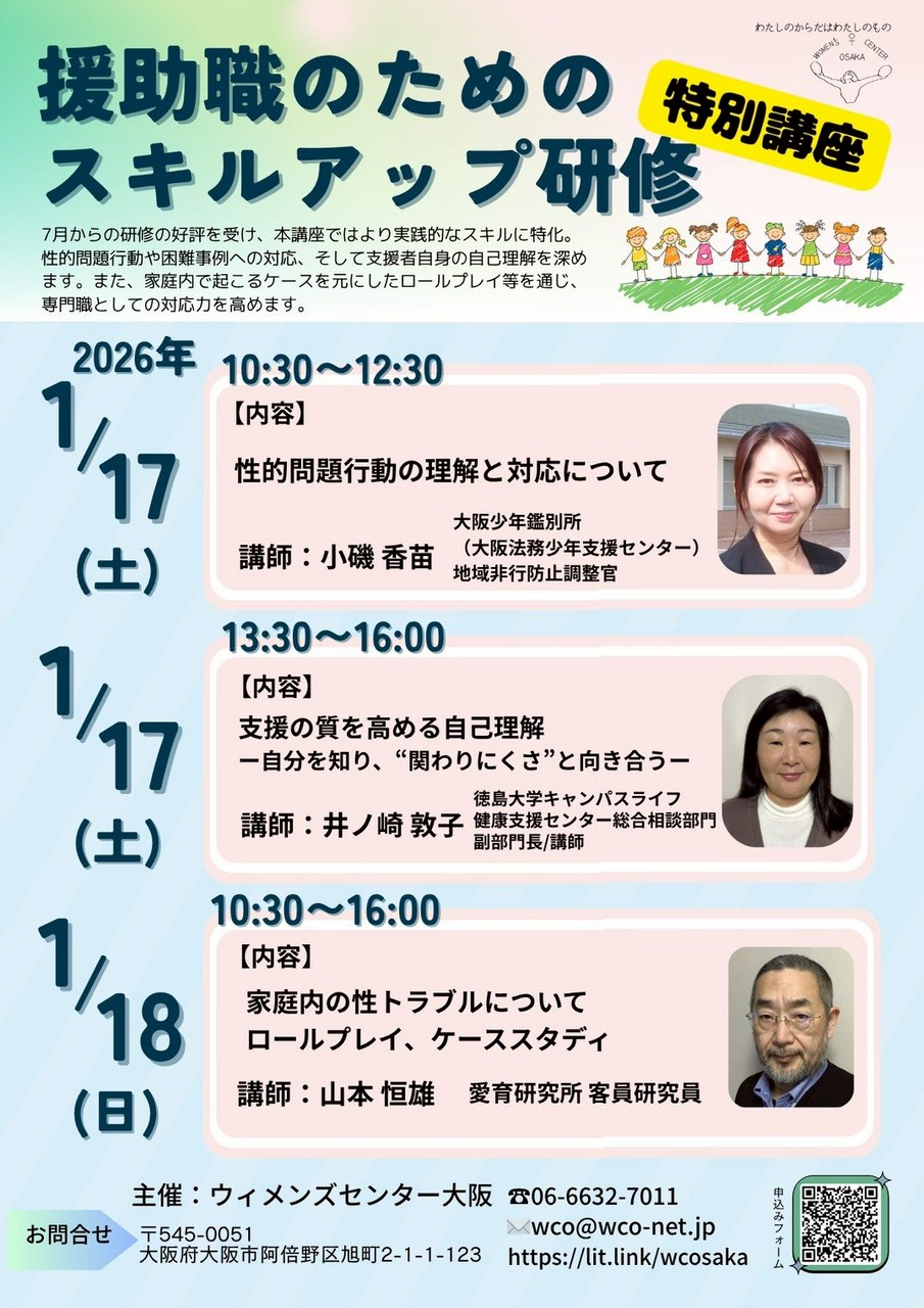『援助職のためのスキルアップ研修』特別講座の実施が決定!NEW!