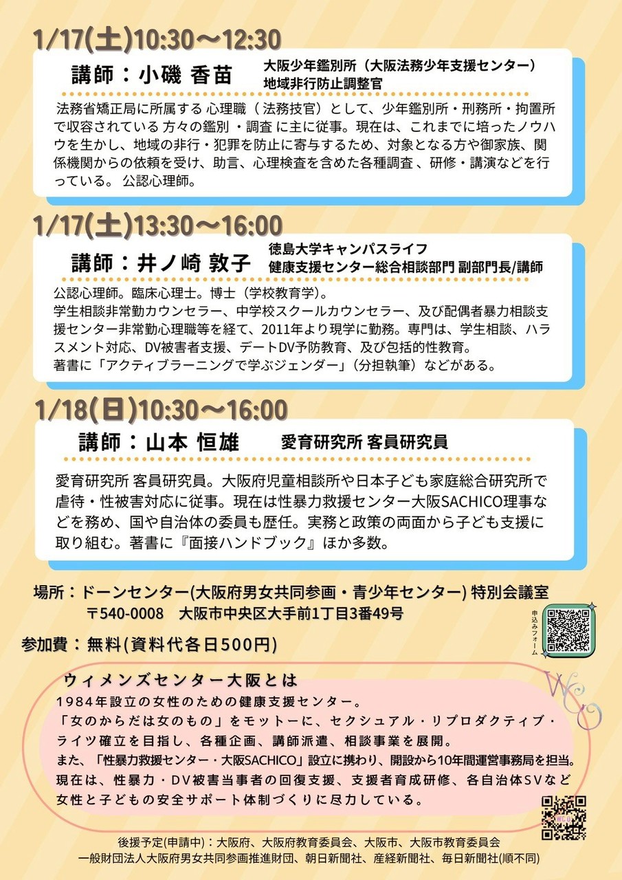 ウィメンズセンター大阪事務局まで。(平日月〜金10時〜17時)